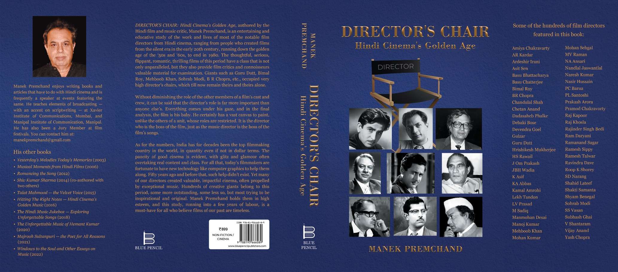 DIRECTOR’S CHAIR — Hindi Cinema’s Golden Age, authored by the Hindi film and music critic, Manek Premchand, is an entertaining and educative study of the work and lives of most of the notable film directors from Hindi cinema, ranging from people who created films from the silent era in the early 20th century, running down the golden age of the ‘50s and ‘60s, and ending in 1980. The thoughtful, serious, flippant, romantic, thrilling films of this period have a class that is not only unparalleled, but they also provide film critics and connoisseurs valuable material for examination. Giants such as Guru Dutt, Bimal Roy, Mehboob Khan, Sohrab Modi, B R Chopra, etc., occupied very high director’s chairs, which even till now remain theirs and theirs alone.