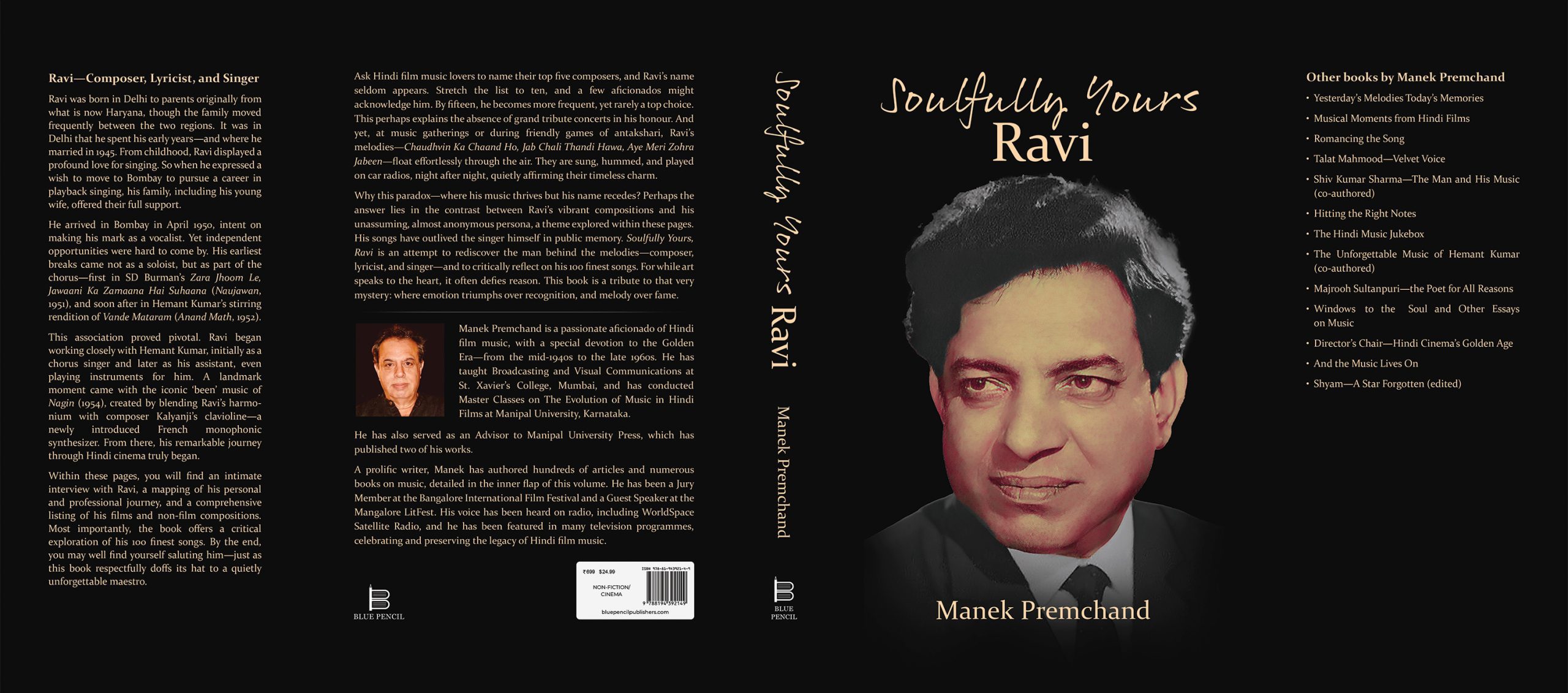 Why this paradox—where his music thrives but his name recedes? Perhaps it lies in the contrast between Ravi’s vibrant compositions and his unassuming, almost anonymous persona, a theme explored within these pages. His songs have outlived the singer himself in public memory. Soulfully Yours, Ravi is an attempt to rediscover the man behind the melodies—composer, lyricist, and singer—and to critically reflect on his 100 finest songs. For while art speaks to the heart, it often defies reason. This book is a tribute to that very mystery: where emotion triumphs over recognition, and melody over fame.