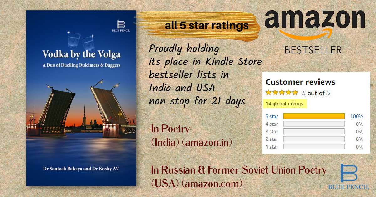 VODKA BY THE VOLGA: A Duo of Duelling Dulcimers & Daggers is a chapbook of intense poems on Russian writers and literature and the country itself, not to mention their poetry, by two of the most noticed names in the world of Indian English poetry today, Dr Santosh Bakaya of Ballad of Bapu fame, and Dr Koshy AV whose co-authored poetry chapbook Wine-kissed Poems was an Amazon bestseller recently.