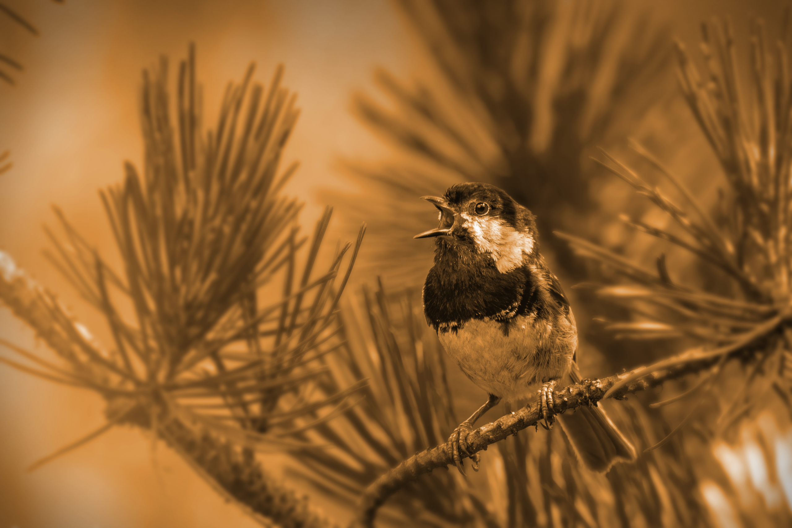 A golden oriole hidden in the chinar trees sang a sanguine song soulfully.